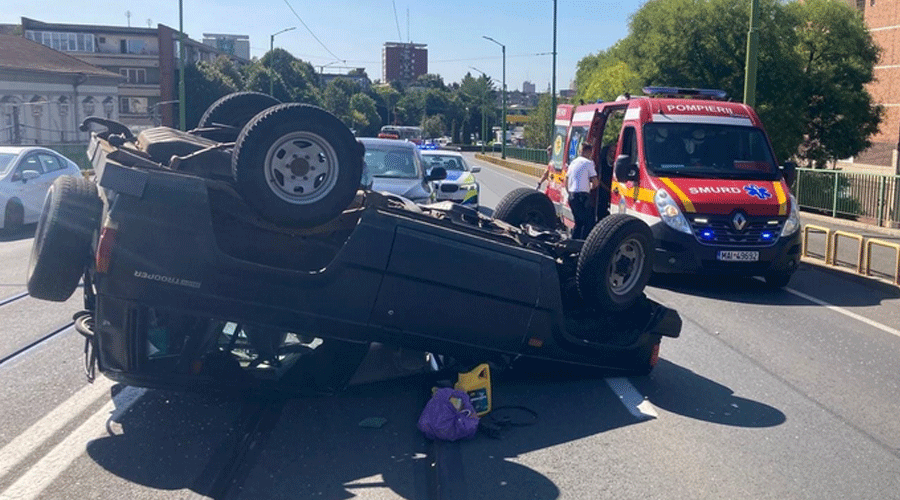 Astăzi, la prânz, un incident dramatic a avut loc pe strada Petru Rareș din municipiul Arad, atunci când o mașină s-a răsturnat cu roțile în sus chiar în mijlocul drumului. Impactul extrem de violent a atras imediat atenția și intervenția rapidă a pompierilor și a unei ambulanțe SMURD de Terapie Intensivă Mobilă.