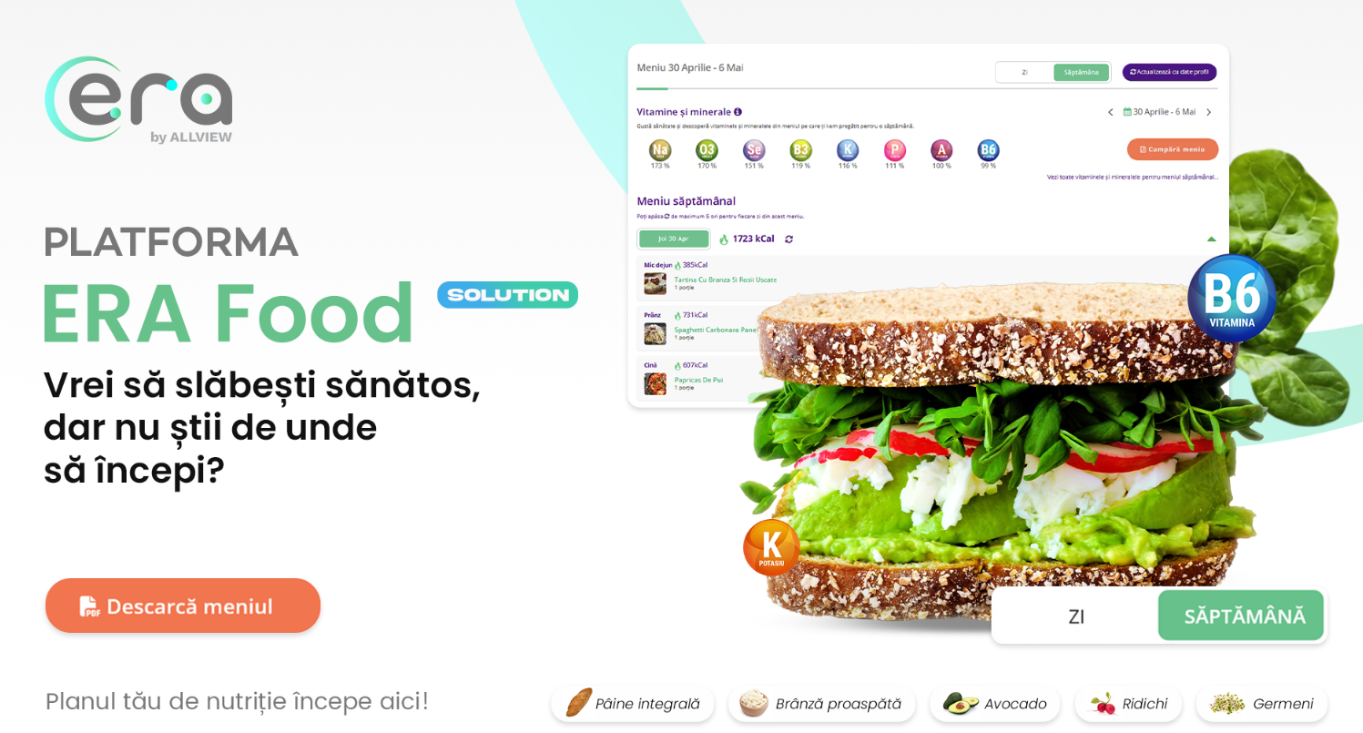 Allview, anunță lansarea ERA Food (www.allview-era.ro/food), platforma digitală inovatoare dedicată persoanelor care își doresc un stil de viață sănătos, echilibrat și ușor de menținut, dar și specialiștilor din domeniul nutriției, wellness-ului și HoReCa. ERA Food face parte din ecosistemul ERA, alături de ERA Health și ERA HoReCa, oferind o abordare integrată asupra sănătății și alimentației inteligente.