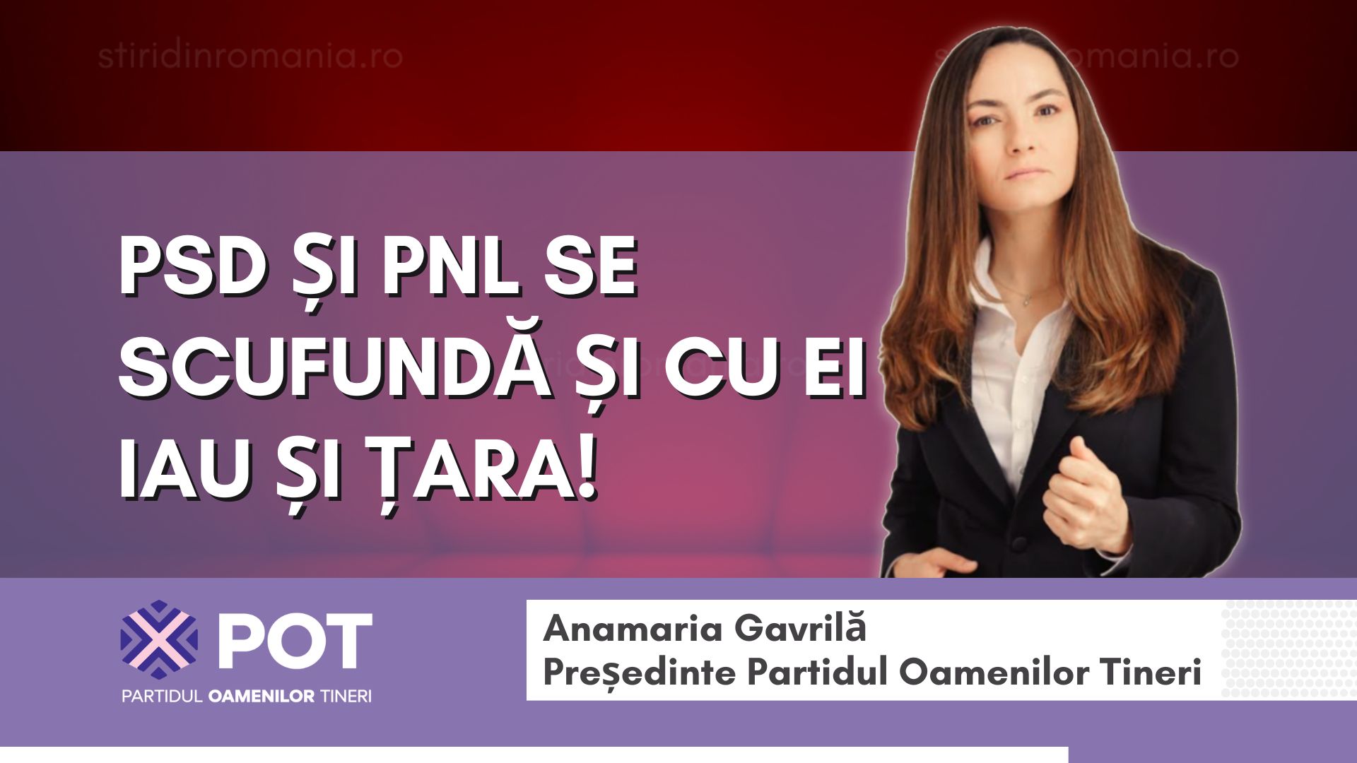PSD și PNL se scufundă. POT aduce profesioniștii de care România are nevoie pentru a construi un viitor prosper” transmite Anamaria Gavrilă.