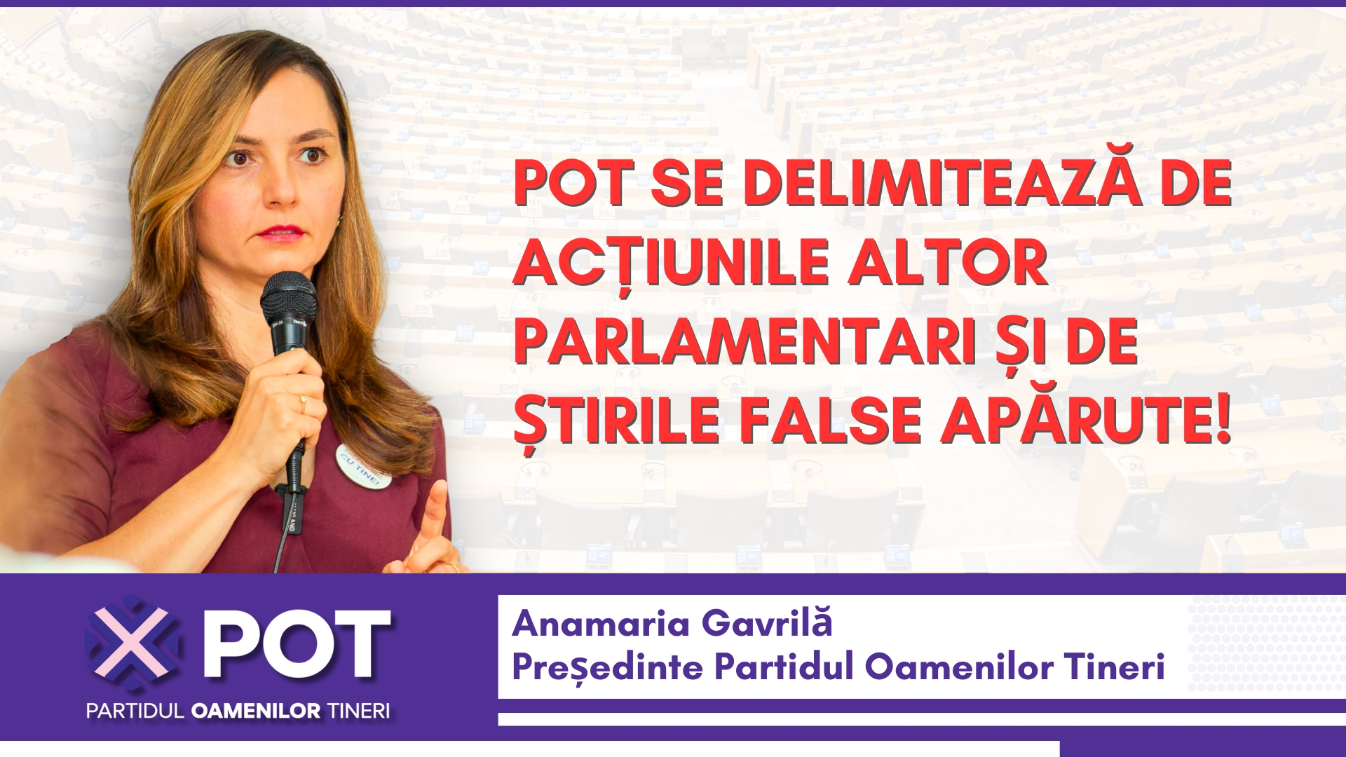 Președinta POT, Anamaria Gavrilă, respinge ferm speculațiile apărute în presă, subliniind că POT nu a inițiat proiectul de lege vehiculat în spațiul public.