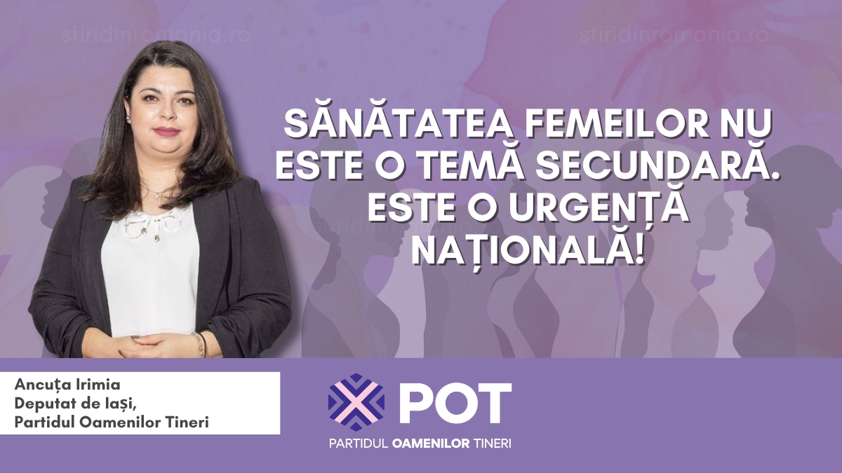 Deputata POT de Iași, Ancuța Irimia, atrage atenția că, în România, peste o jumătate de milion de femei suferă de endometrioză, o boală adesea ignorată, iar mii de cupluri se confruntă cu problema infertilității fără sprijin real din partea statului. Ea consideră că Ministerul Sănătății ar trebui să se concentreze pe programe și soluții pentru aceste probleme urgente, în loc să deturneze atenția prin dispute politice.
