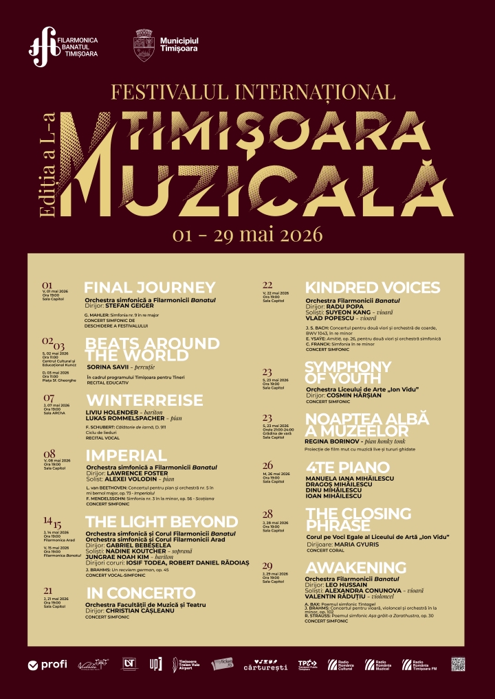 Festivalul International „Timisoara Muzicala” va marca o aniversare importantă între 1 și 29 mai 2026, devenind ediția a L-a a acestui eveniment de referință. Cu o tradiție de cinci decenii, festivalul s-a impus ca unul dintre cele mai importante repere ale vieții muzicale din Timișoara și din România.