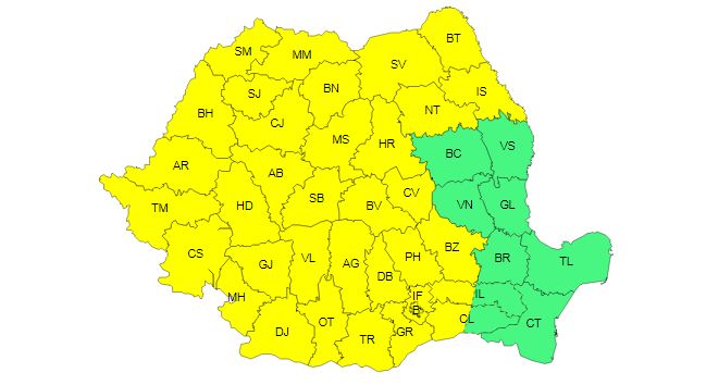 Administrația Națională de Meteorologie a emis o nouă atenționare cod galben de vreme caniculară, valabilă pentru ziua de mâine, în cea mai mare parte a țării. Conform meteorologilor, temperaturile vor fi deosebit de ridicate pentru această perioadă, iar disconfortul termic va fi în creștere. Singurele zone care scapă de această atenționare sunt județele din sudul Moldovei și din Dobrogea.