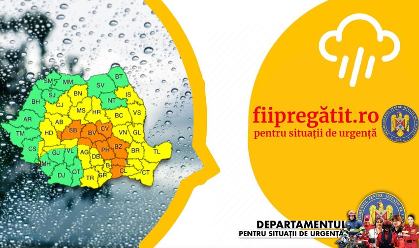 În sudul și sud-estul Transilvaniei și local în Muntenia vor fi averse torențiale, descărcări electrice și vijelii, iar în intervale scurte de timp (1-3 ore) sau prin acumulare cantitățile de apă vor fi de 30…40 l/mp și izolat peste 50…60 l/mp.