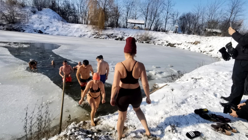 O practică mai puțin obișnuită, baia la copcă, a fost organizată recent la balta de pescuit „Tarina lui Petre”, din Giroc, județul Timiș. Peste 30 de persoane curajoase au intrat în apa înghețată, la o temperatură exterioară de minus 7 grade Celsius.