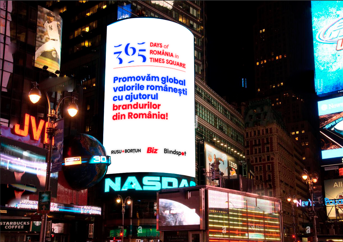 Brandurile românești vor putea trăi „visul american” și vor putea ajunge în Times Square. Proiectul va prinde viață la începutul lunii decembrie, chiar de Ziua Națională a României, și se va încheia un an mai târziu, cu un proiect editorial marca Biz, în paginile căruia vor fi prezentate în detaliu toate cele 365 de campanii ale brandurilor care au avut curajul să iasă din zona de confort și să se manifeste global.