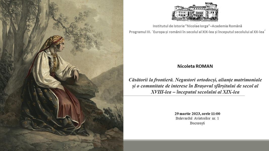 Comunicarea lunii martie la programul de istorie modernă al Institutului de Istorie „N. Iorga”: – Nicoleta Roman, Căsătorii la frontieră Miercuri 29 martie ora 11.