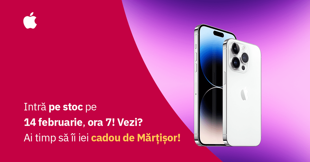 De 14 februarie ținem cu tine. 😎 Ca să meargă mai ușor numărătoarea inversă până de mărțișor. 😬 iPhone 14 Pro și iPhone 14 Pro Max în stoc pe 14 februarie: 👉https://bit.ly/iPhone14Pro-iPhone14ProMax-in-stoc-14-Februa…