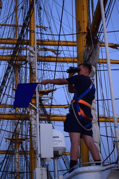 După ce zarva manevrei de ieșire din port s-a potolit, cadeții sunt adunați la puntea centru pentru comunicări de ordine. Programul zilei va cuprinde o recapitulare practică a cunoașterii navei, precum și ateliere de noduri marinărești, în timp ce soldații și gradații profesioniști dau startul retușurilor necesare pentru ca „lebăda albă” a Forțelor Navale Române să strălucească la festivitățile dedicate Zilei Marinei Române.