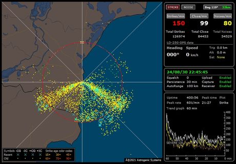 În perioada 30-31 august, sud-estul României a fost afectat de fenomene meteorologice extreme. Precipitațiile intense au provocat inundații în multe localități din zona litoralului, iar descărcările electrice frecvente au fost o caracteristică a acestui fenomen. Sistemul Boltek EFM 100 C, instalat la Observatorul Seismologic Eforie Nord, a înregistrat aceste descărcări și datele au fost analizate de către cercetători.