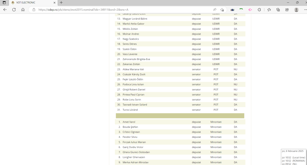 Iata cum, pe cdep.ro, apare ca 4 senatori de la UDMR, au votat DA pentru partidul POT. La final vom pune si o poza completa cu adresa si data, cat si un fisier zip cu pagina arhivata, sa ramana ca dovada.