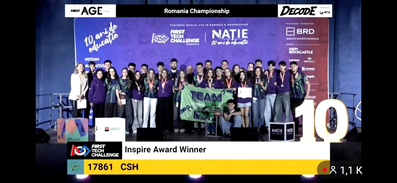 Echipa CSH a impresionat jurații, obținând Premiul Inspire Locul 1, cea mai prestigioasă distincție din cadrul competiției. Acest premiu este acordat echipei care excelează în toate aspectele competiției: designul și performanța robotului, documentația tehnică, colaborarea și impactul în comunitate.