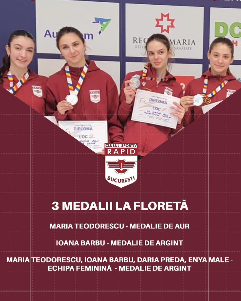 Echipa de floretiști de la Rapid a obținut rezultate deosebite la naționalele de cadeți și juniori, încheind competiția cu trei medalii. Maria Teodorescu a devenit campioană națională la juniori-individual, în timp ce Ioana Barbu a obținut argintul la cadeți-individual.