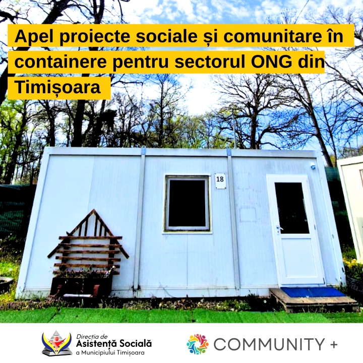 Directia de Asistenta Sociala a Municipiului Timisoara lanseaza astazi Programul COMMUNITY+, un apel catre organizatiile neguvernamentale locale pentru dezvoltarea si implementarea de proiecte sociale in Timisoara, in containere modulare.