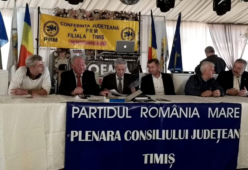 Conferința județeană de dare de seamă și alegeri a PRM Timiș s-a desfășurat la hotelul Aurora din Timișoara, proprietatea unui simpatizant al partidului, unde au fost votați și delegații pentru Congresul al VII-lea al Partidului România Mare, ce va avea loc în data de 22.11.2025.