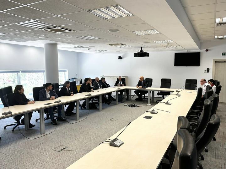 Astăzi, 10 aprilie 2024, la sediul Centrului Municipal Integrat pentru Situații de Urgență București-Ilfov, șeful DSU, dr. Raed Arafat a avut o întâlnire cu o delegație formată din parlamentari elvețieni, condusă de E.S. Massimo Baggi, ambasadorul Confederației Elvețiene la București.