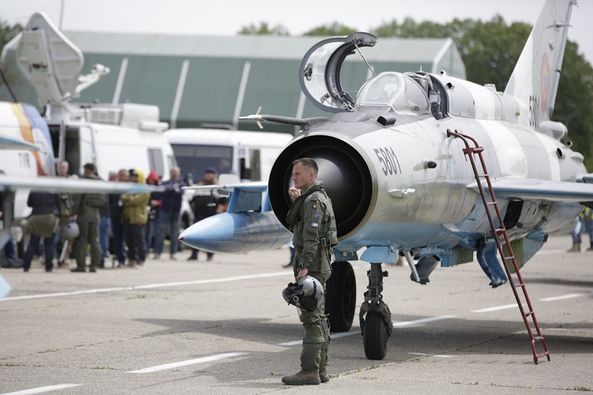 Foto: MiG-ul 21 LanceR a vuit azi pe cerul României pentru ultima dată, apoi a aterizat înapoi la Bacău, de unde zburase prima dată acum 26 de ani.