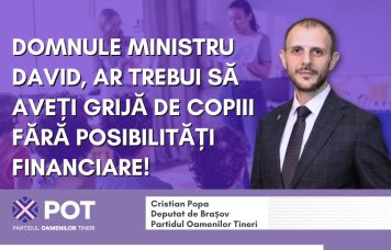 Deputatul POT de Brașov, Cristian Popa, transmite o scrisoare deschisă Ministrului Educației, Daniel David, prin care solicită explicații privind întârzierile la virarea sumelor pe cardurile sociale educaționale destinate elevilor...