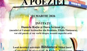 Membrii Filialei Timișoara a Uniunii Scriitorilor din România, Daniela Ratiu și Doru Arazan jr., împreună cu elevi și profesori ai Colegiului Național C.D. Loga din Timișoara, vor sărbători Ziua...