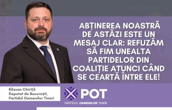 POT s-a abținut astăzi la votul din plenul Camerei Deputaților pe moțiunea simplă. Răzvan Chiriță subliniază că POT refuză să fie unealta partidelor de guvernare, când acestea se ceartă...