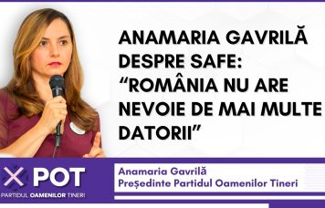 Președinta POT, Anamaria Gavrilă, avertizează că, deși apărarea țării este esențială, SAFE, promovat ca soluție salvatoare riscă să împovăreze și mai mult România cu datorii. Ea subliniază că starea...