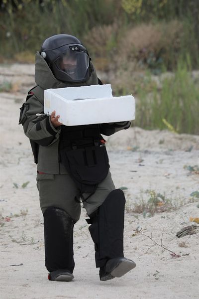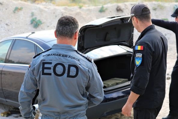 Printre activitățile cu grad de risc s-a numărat și testarea efectului unor dispozitive explozive improvizate montate în, pe sau sub mașini-capcană. Îmbrăcați în costume speciale de protecție, militarii EOD au transportat încărcătura explozivă în zona de antrenament, au montat-o, iar la final colegii lor au detonat-o.