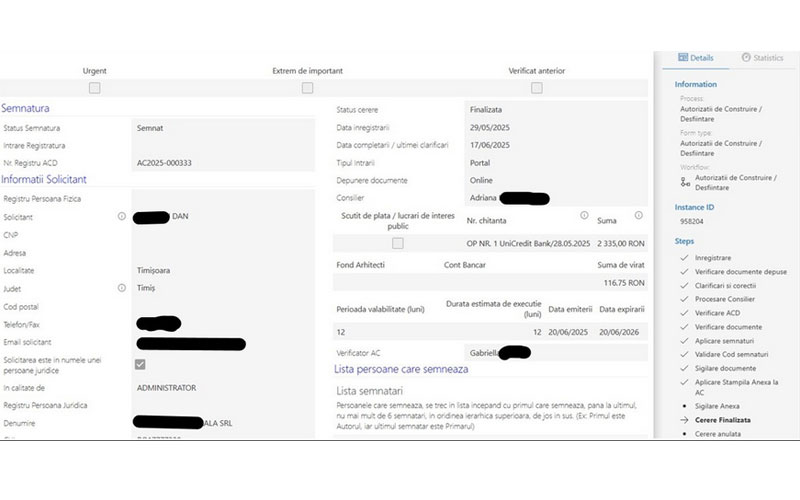 Pentru prima dată în România, la Timișoara, o autorizație de construire a fost emisă 100% digital, fără hârtie, fără drumuri la ghișeu și fără semnătura clasică „cu pixul și ștampila”.