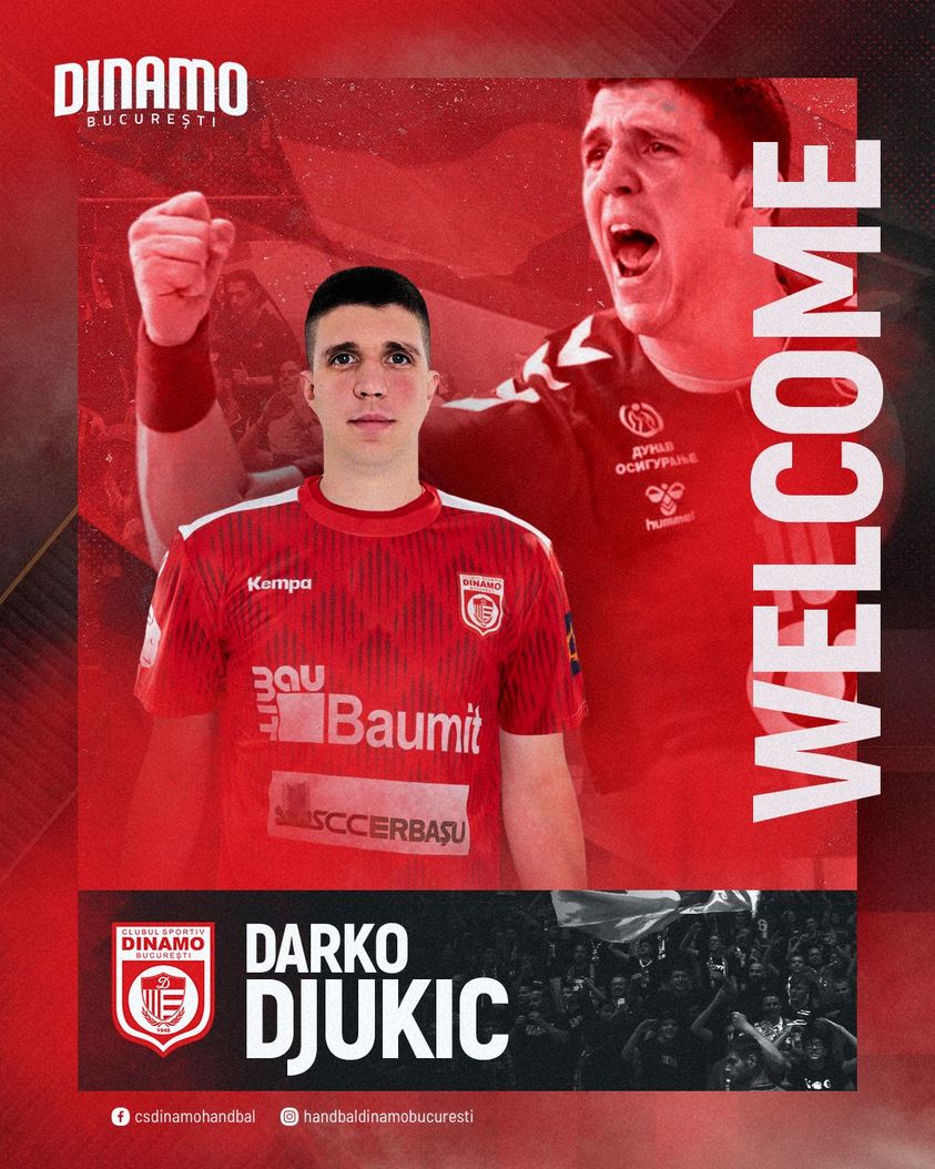 Noul jucător Darko Djukic se alătură echipei campioane a României, Dinamo, aducând cu el o vastă experiență în liga EHF Champions League. Cu șapte sezoane jucate la nivel înalt, Djukic a evoluat pentru echipe precum Metalurg Skopje, Beșiktaș, Industria Kielce, Meshkov Brest sau Vardar.