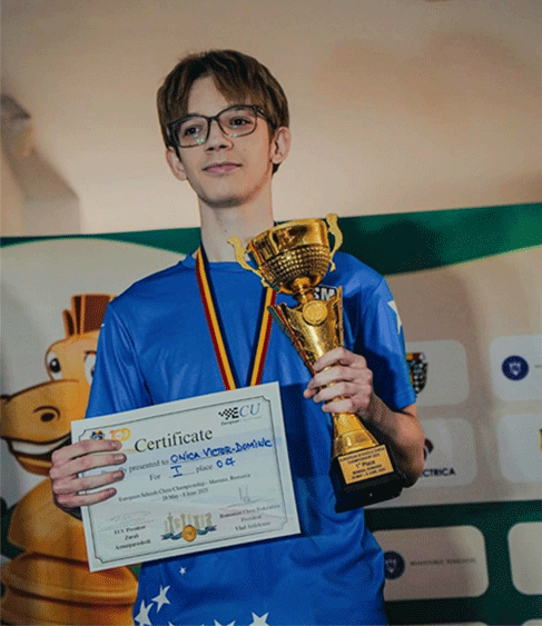 Timișoara are un nou motiv de mândrie! Victor Dominic Onică, elev în clasa a IX-a la Colegiul Național Bănățean, a cucerit locul I și titlul de campion european de șah clasic școlar la categoria Under 17. ,